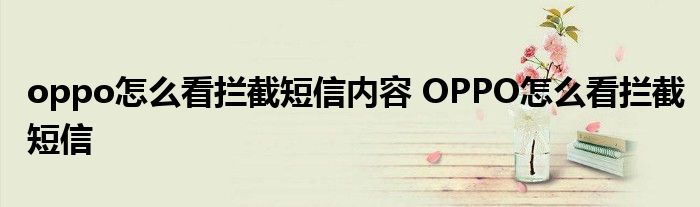 大家好,小詹來為大家解答以上問題。oppo怎么看攔截短信內(nèi)容,OPPO怎么看攔截短信很多人還不知道,現(xiàn)在讓我們一起來看看吧!