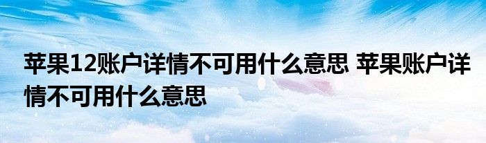 大家好,小詹來(lái)為大家解答以上問(wèn)題。蘋(píng)果12賬戶詳情不可用什么意思,蘋(píng)果賬戶詳情不可用什么意思很多人還不知道,現(xiàn)在讓我們一起來(lái)看看吧!