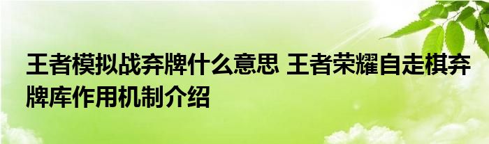 在王者模擬戰(zhàn)中出現(xiàn)了一個棄牌庫的新名詞,不少玩家都不清楚這是干什么用,下面就讓小編來告訴大家王者模擬戰(zhàn)棄牌什么意思,感興趣的不要錯過哦。