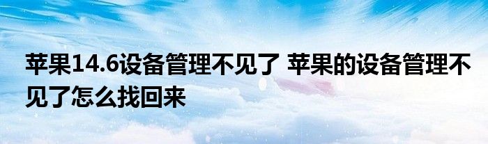 大家好,小詹來為大家解答以上問題。蘋果14.6設備管理不見了,蘋果的設備管理不見了怎么找回來很多人還不知道,現在讓我們一起來看看吧!
