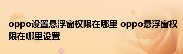 大家好,小琪來為大家解答以上問題。oppo設置懸浮窗權限在哪里,oppo懸浮窗權限在哪里設置這個很多人還不知道,現在讓我們一起來看看吧!