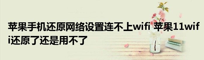 大家好,小詹來為大家解答以上問題。蘋果手機還原網絡設置連不上wifi,蘋果11wifi還原了還是用不了很多人還不知道,現在讓我們一起來看看吧!