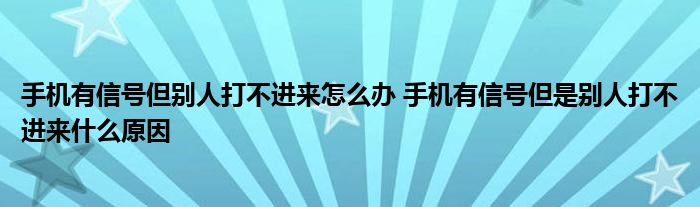 大家好,小詹來為大家解答以上問題。手機有信號但別人打不進來怎么辦,手機有信號但是別人打不進來什么原因很多人還不知道,現在讓我們一起來看看吧!