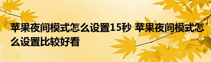大家好,小琪來為大家解答以上問題。蘋果夜間模式怎么設置15秒,蘋果夜間模式怎么設置比較好看這個很多人還不知道,現(xiàn)在讓我們一起來看看吧!