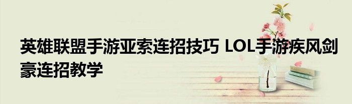 以上就是關于LOL手游疾風劍豪技能連招方法的內容,讓我們一起來期待這個英雄吧,喜歡這個英雄的玩家們千萬不要錯過哦!