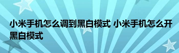 大家好,小詹來為大家解答以上問題。小米手機怎么調到黑白模式,小米手機怎么開黑白模式很多人還不知道,現在讓我們一起來看看吧!