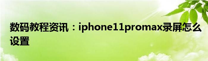 現(xiàn)在各種各樣的數(shù)碼設(shè)備在我們的生活當(dāng)中幾乎可以說是無處不在,平時(shí)我們使用的手機(jī),IP,電腦等等這些都屬于數(shù)碼設(shè)備,那么這些數(shù)碼設(shè)備當(dāng)中會(huì)存在著很多的功能,當(dāng)然在我們使用的過程當(dāng)中自然也會(huì)出現(xiàn)說各種的問題,那么我們?nèi)绾尾拍苋ソ鉀Q這些問題以及使用好這些功能呢?這個(gè)時(shí)候就需要我們?nèi)チ私膺@些功能及問題的解決方法,今天小編就來給大家分享下,關(guān)于iphone11promax錄屏怎么設(shè)置方面的問題及功能的詳細(xì)內(nèi)容,希望下面小編為大家分享的內(nèi)容對(duì)大家來說有一定的幫助哦。iphone11pro max錄屏怎么設(shè)置