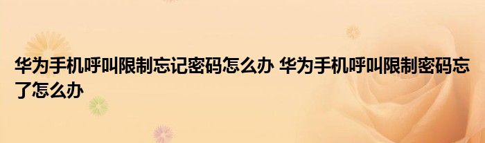 大家好,小詹來為大家解答以上問題。華為手機呼叫限制忘記密碼怎么辦,華為手機呼叫限制密碼忘了怎么辦很多人還不知道,現在讓我們一起來看看吧!