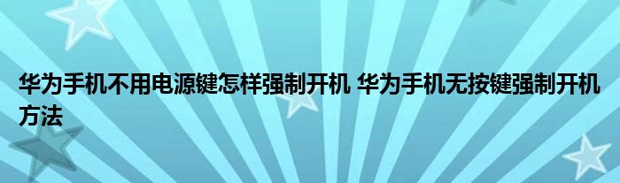 大家好,小琪來為大家解答以上問題。華為手機(jī)不用電源鍵怎樣強(qiáng)制開機(jī),華為手機(jī)無按鍵強(qiáng)制開機(jī)方法這個很多人還不知道,現(xiàn)在讓我們一起來看看吧!