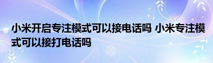 大家好,小詹來為大家解答以上問題。小米開啟專注模式可以接電話嗎,小米專注模式可以接打電話嗎很多人還不知道,現在讓我們一起來看看吧!