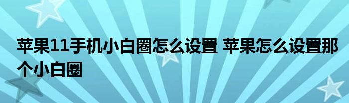 大家好,小琪來為大家解答以上問題。蘋果11手機小白圈怎么設置,蘋果怎么設置那個小白圈這個很多人還不知道,現在讓我們一起來看看吧!