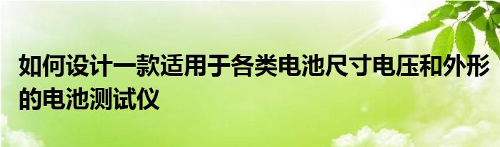 大家好,小科來為大家解答以上問題。如何設(shè)計(jì)一款適用于各類電池尺寸 電壓和外形的電池測(cè)試儀這個(gè)很多人還不知道,現(xiàn)在讓我們一起來看看吧!