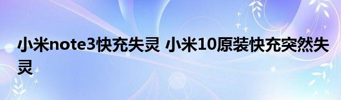 大家好,小詹來為大家解答以上問題。小米note3快充失靈,小米10原裝快充突然失靈很多人還不知道,現在讓我們一起來看看吧!