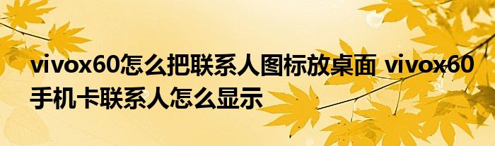 大家好,小詹來為大家解答以上問題。vivox60怎么把聯系人圖標放桌面,vivox60手機卡聯系人怎么顯示很多人還不知道,現在讓我們一起來看看吧!