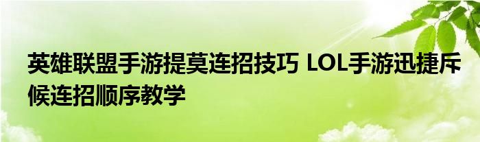 以上就是關于LOL手游迅捷斥候連招順序教學的內容,讓我們一起來期待這個英雄吧,喜歡這個英雄的玩家們千萬不要錯過哦!