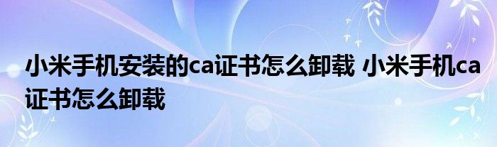 大家好,小詹來為大家解答以上問題。小米手機安裝的ca證書怎么卸載,小米手機ca證書怎么卸載很多人還不知道,現在讓我們一起來看看吧!