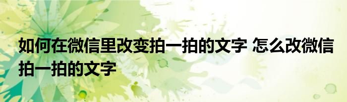 大家好,小琪來為大家解答以上問題。如何在微信里改變拍一拍的文字,怎么改微信拍一拍的文字這個很多人還不知道,現在讓我們一起來看看吧!