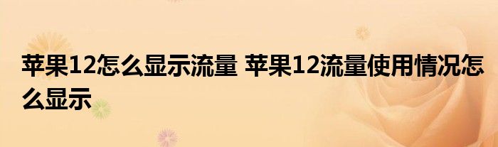 大家好,小詹來為大家解答以上問題。蘋果12怎么顯示流量,蘋果12流量使用情況怎么顯示很多人還不知道,現在讓我們一起來看看吧!