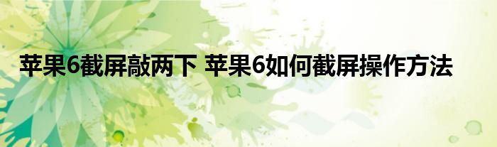 大家好,小詹來為大家解答以上問題。蘋果6截屏敲兩下,蘋果6如何截屏操作方法很多人還不知道,現在讓我們一起來看看吧!