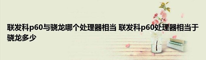 大家好,小琪來為大家解答以上問題。聯發科p60與驍龍哪個處理器相當,聯發科p60處理器相當于驍龍多少這個很多人還不知道,現在讓我們一起來看看吧!