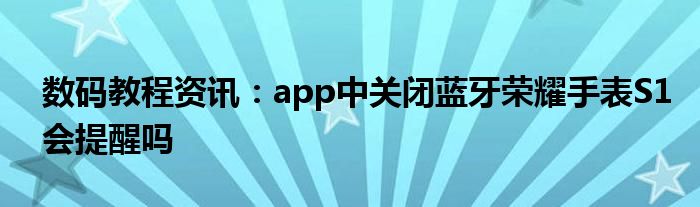 現(xiàn)在各種各樣的數(shù)碼設(shè)備在我們的生活當中幾乎可以說是無處不在,平時我們使用的手機,IP,電腦等等這些都屬于數(shù)碼設(shè)備,那么這些數(shù)碼設(shè)備當中會存在著很多的功能,當然在我們使用的過程當中自然也會出現(xiàn)說各種的問題,那么我們?nèi)绾尾拍苋ソ鉀Q這些問題以及使用好這些功能呢?這個時候就需要我們?nèi)チ私膺@些功能及問題的解決方法,今天小編就來給大家分享下,關(guān)于app中關(guān)閉藍牙榮耀手表S1會提醒嗎方面的問題及功能的詳細內(nèi)容,希望下面小編為大家分享的內(nèi)容對大家來說有一定的幫助哦。答案