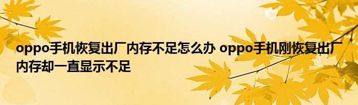 大家好,小琪來為大家解答以上問題。oppo手機恢復出廠內存不足怎么辦,oppo手機剛恢復出廠內存卻一直顯示不足這個很多人還不知道,現在讓我們一起來看看吧!