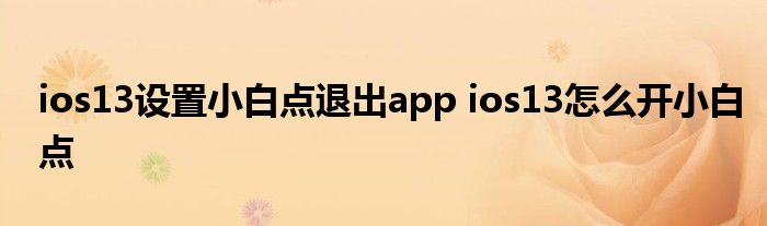 大家好,小琪來為大家解答以上問題。ios13設置小白點退出app,ios13怎么開小白點這個很多人還不知道,現在讓我們一起來看看吧!