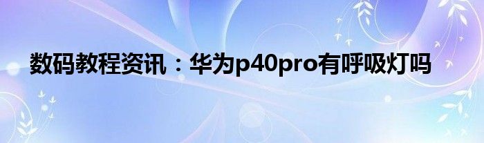 現在各種各樣的數碼設備在我們的生活當中幾乎可以說是無處不在,平時我們使用的手機,IP,電腦等等這些都屬于數碼設備,那么這些數碼設備當中會存在著很多的功能,當然在我們使用的過程當中自然也會出現說各種的問題,那么我們如何才能去解決這些問題以及使用好這些功能呢?這個時候就需要我們去了解這些功能及問題的解決方法,今天小編就來給大家分享下,關于華為p40pro有呼吸燈嗎方面的問題及功能的詳細內容,希望下面小編為大家分享的內容對大家來說有一定的幫助哦。華為p40pro有呼吸燈嗎?