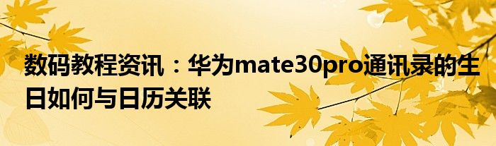 現在各種各樣的數碼設備在我們的生活當中幾乎可以說是無處不在,平時我們使用的手機,IP,電腦等等這些都屬于數碼設備,那么這些數碼設備當中會存在著很多的功能,當然在我們使用的過程當中自然也會出現說各種的問題,那么我們如何才能去解決這些問題以及使用好這些功能呢?這個時候就需要我們去了解這些功能及問題的解決方法,今天小編就來給大家分享下,關于華為mate30pro通訊錄的生日如何與日歷關聯方面的問題及功能的詳細內容,希望下面小編為大家分享的內容對大家來說有一定的幫助哦。華為mate30pro通訊錄的生日如何與日歷關聯