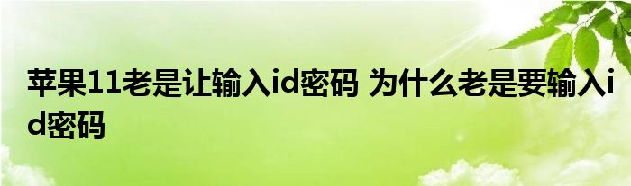 大家好,小詹來為大家解答以上問題。蘋果11老是讓輸入id密碼,為什么老是要輸入id密碼很多人還不知道,現在讓我們一起來看看吧!