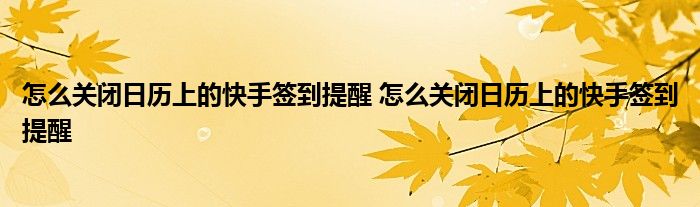 大家好,小琪來為大家解答以上問題。怎么關(guān)閉日歷上的快手簽到提醒,怎么關(guān)閉日歷上的快手簽到提醒這個(gè)很多人還不知道,現(xiàn)在讓我們一起來看看吧!