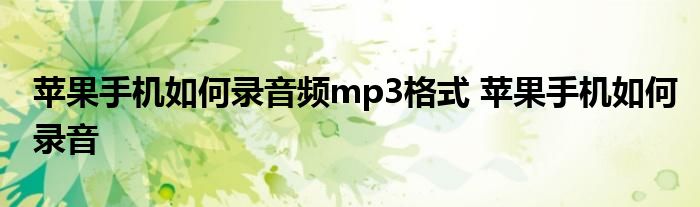 大家好,小柏來為大家解答以上問題。蘋果手機如何錄音頻mp3格式,蘋果手機如何錄音很多人還不知道,現在讓我們一起來看看吧!