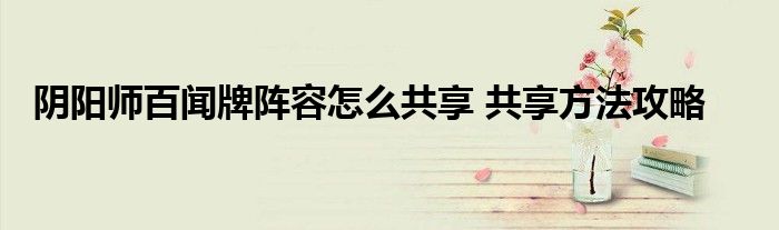 以上就是關于陰陽師百聞牌共享方法攻略,小伙伴們學會了嗎,希望以上攻略能給玩家們帶來一定的幫助。