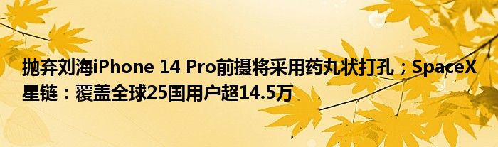 大家好,小科來為大家解答以上問題。拋棄劉海iPhone 14 Pro前攝將采用藥丸狀打孔;SpaceX星鏈:覆蓋全球25國 用戶超14.5萬這個很多人還不知道,現在讓我們一起來看看吧!