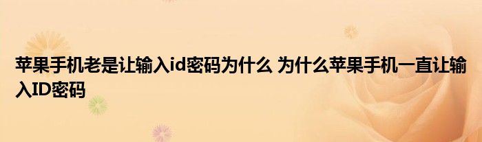 大家好,小詹來為大家解答以上問題。蘋果手機老是讓輸入id密碼為什么,為什么蘋果手機一直讓輸入ID密碼很多人還不知道,現在讓我們一起來看看吧!