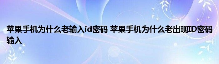 大家好,小詹來為大家解答以上問題。蘋果手機為什么老輸入id密碼,蘋果手機為什么老出現ID密碼輸入很多人還不知道,現在讓我們一起來看看吧!