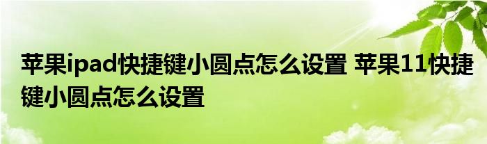 大家好,小琪來為大家解答以上問題。蘋果ipad快捷鍵小圓點怎么設置,蘋果11快捷鍵小圓點怎么設置這個很多人還不知道,現在讓我們一起來看看吧!