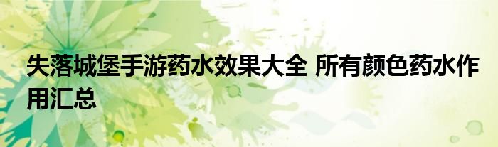失落城堡手游之中每一種藥水都有著不同的顏色,玩家常常弄不明白它們之間的差異,對于具體的效果并不清楚,下面就來給大家講解一下所有藥水的作用,有需要的玩家來了解一下吧。
