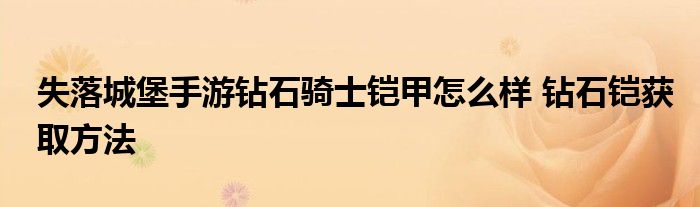 鉆石騎士鎧甲是失落城堡手游之中一個非常強力的重甲裝備,可以極大的提升玩家的防御力,下面就給大家講解一下這件裝備的屬性還有獲取方法,快來了解一下。