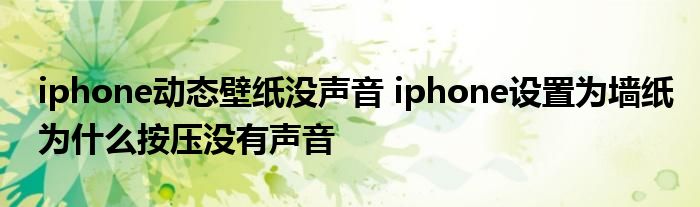 大家好,小琪來為大家解答以上問題。iphone動態壁紙沒聲音,iphone設置為墻紙為什么按壓沒有聲音這個很多人還不知道,現在讓我們一起來看看吧!