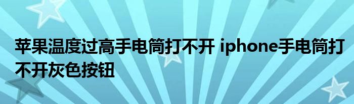 大家好,小詹來為大家解答以上問題。蘋果溫度過高手電筒打不開,iphone手電筒打不開灰色按鈕很多人還不知道,現(xiàn)在讓我們一起來看看吧!