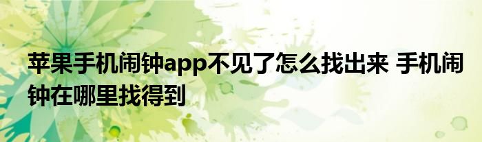 大家好,小詹來為大家解答以上問題。蘋果手機鬧鐘app不見了怎么找出來,手機鬧鐘在哪里找得到很多人還不知道,現在讓我們一起來看看吧!