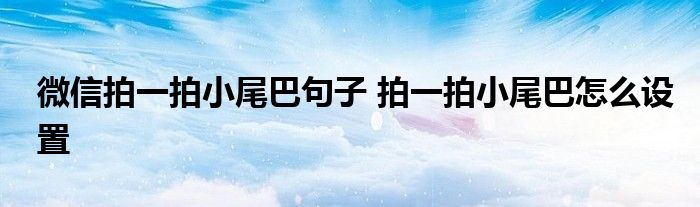 大家好,小琪來為大家解答以上問題。微信拍一拍小尾巴句子,拍一拍小尾巴怎么設置這個很多人還不知道,現在讓我們一起來看看吧!