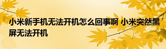 大家好,小詹來為大家解答以上問題。小米新手機無法開機怎么回事啊,小米突然黑屏無法開機很多人還不知道,現在讓我們一起來看看吧!