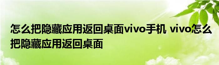 大家好,小詹來為大家解答以上問題。怎么把隱藏應用返回桌面vivo手機,vivo怎么把隱藏應用返回桌面很多人還不知道,現在讓我們一起來看看吧!
