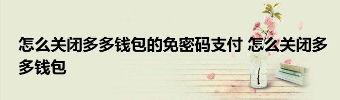 大家好,小琪來為大家解答以上問題。怎么關(guān)閉多多錢包的免密碼支付,怎么關(guān)閉多多錢包這個很多人還不知道,現(xiàn)在讓我們一起來看看吧!