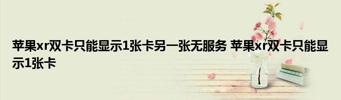 大家好,小詹來為大家解答以上問題。蘋果xr雙卡只能顯示1張卡另一張無服務,蘋果xr雙卡只能顯示1張卡很多人還不知道,現在讓我們一起來看看吧!