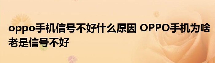 大家好,小詹來為大家解答以上問題。oppo手機信號不好什么原因,OPPO手機為啥老是信號不好很多人還不知道,現在讓我們一起來看看吧!
