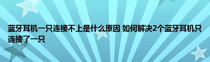 大家好,小琪來為大家解答以上問題。藍牙耳機一只連接不上是什么原因,如何解決2個藍牙耳機只連接了一只這個很多人還不知道,現在讓我們一起來看看吧!