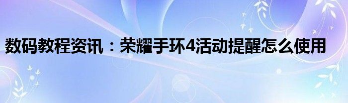 現(xiàn)在各種各樣的數(shù)碼設(shè)備在我們的生活當(dāng)中幾乎可以說是無處不在,平時我們使用的手機,IP,電腦等等這些都屬于數(shù)碼設(shè)備,那么這些數(shù)碼設(shè)備當(dāng)中會存在著很多的功能,當(dāng)然在我們使用的過程當(dāng)中自然也會出現(xiàn)說各種的問題,那么我們?nèi)绾尾拍苋ソ鉀Q這些問題以及使用好這些功能呢?這個時候就需要我們?nèi)チ私膺@些功能及問題的解決方法,今天小編就來給大家分享下,關(guān)于榮耀手環(huán)4活動提醒怎么使用方面的問題及功能的詳細(xì)內(nèi)容,希望下面小編為大家分享的內(nèi)容對大家來說有一定的幫助哦。介紹